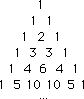 Pascal's triangle is a triangular shaped arrangement of binomial coefficients in which the first row (n=0) is 1, the second row (n=1) is 1 1, the third row (n=2) is 1 2 1, and to on until the (n + 1)th row, kth column is defined by (N!)/((K!) (N-K)!)